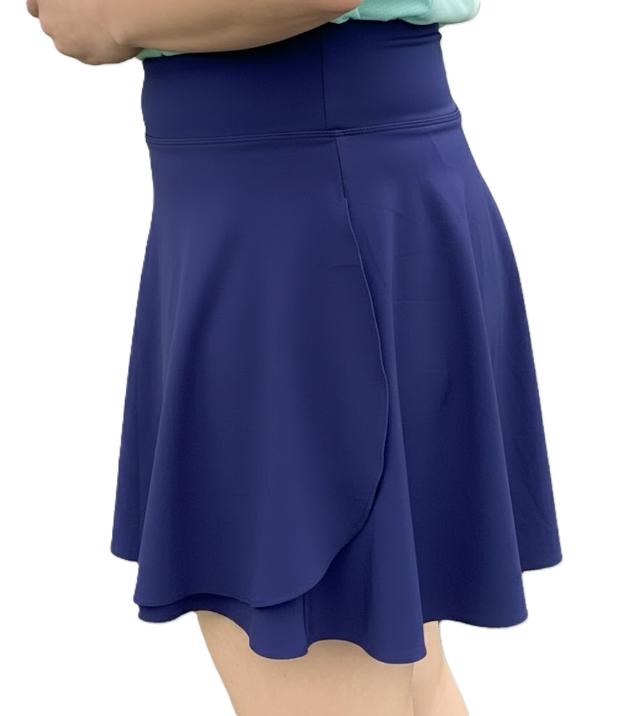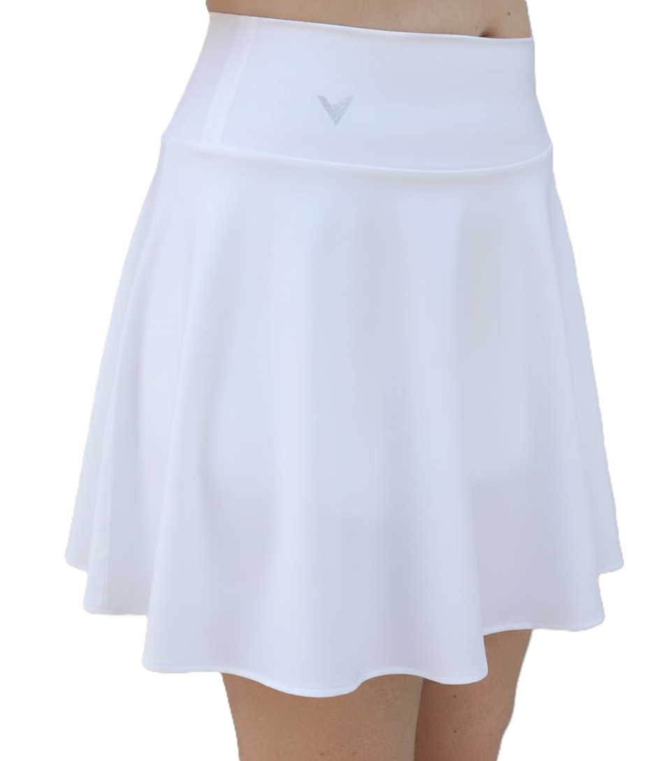 Our high-waisted skirt is designed for performance and all-day wear. The medium-weight spandex in the waistband and the shorts, offers exceptional support and a comfortable, flattering fit. The high waist stays put, while the carefully chosen spandex feels smooth against your skin. We’ve paid attention to every detail, including comfortable, chafe-free seams. A subtle silicone band on the bottom of each leg prevents ride-up, so you can focus on your game or your day. Each leg features a convenient, deep side pocket – ideal for stashing your phone, cards, or other essentials. The skirt has a slightly longer profile in the back for enhanced coverage. Our skirt was designed for regular and tall players. If you would like a little more length, our tall size is 2” longer.